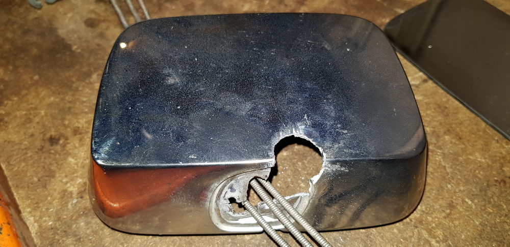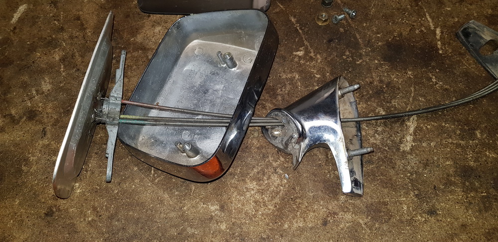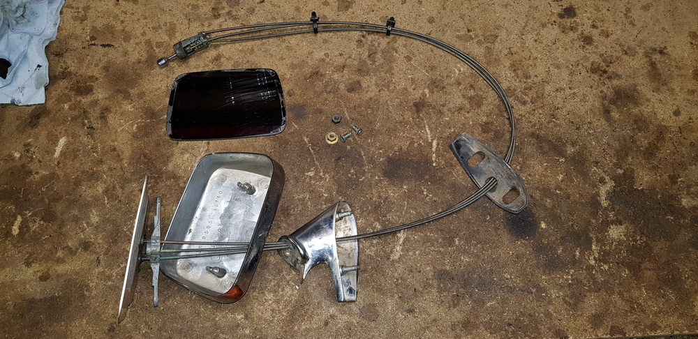 Outside Rear View Mirror, Left For Parts.Housing is broken but Stand, Glass, Cables, Knob, Gasket and Fasteners are still in good condition. 20€